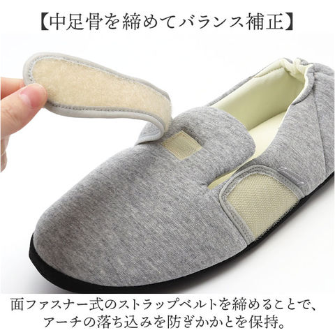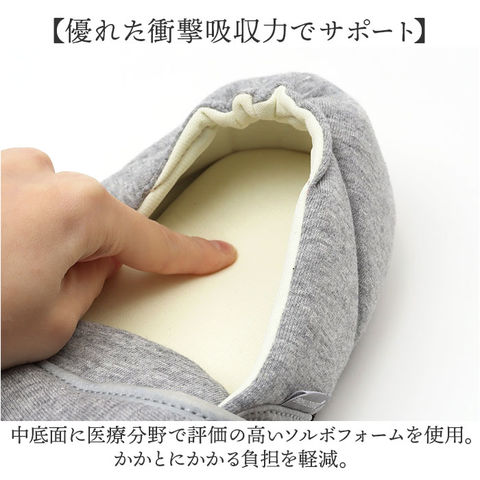 | 商品説明 | 【お家時間が快適に♪】掃除や料理など、室内での立ち仕事が快適になる「SORBO ソルボ ルームシューズ S501」【優れた衝撃吸収力でサポート】中底面に医療分野で評価の高いソルボフォームを使用。かかとにかかる負担を軽減。【優しい履き心地】甲部分には柔らかい日本製ファブリック、甲裏には軟質フォームを採用。通気性とクッション性◎【中足骨を締めてバランス補正】面ファスナー式のストラップベルトを締めることで、アーチの落ち込みを防ぎかかとを保持。【滑りにくく安心】底面には、滑りにくく柔らかいタッチのPVCレザー。フローリングを傷つける心配なし!【生活に寄り添うアイテム】シンプルで機能的なルームシューズ。旅行先での室内履きにも◎持ち運びしやすい軽量設計。【お気に入りをチョイス】インテリアにも素敵にマッチする、落ち着きのあるカラーリング。気持ちも足どりも軽やかに♪ |