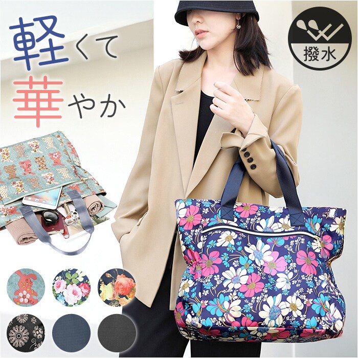 | 商品説明 | 【毎日使いにちょうどいい】軽くて、華やか、大容量トートバッグ。【軽量で疲れにくい】大きいのに軽量設計だから、長時間の持ち歩きも快適♪【たっぷり入る】タオルや着替え、ポーチなどの荷物もしっかり収納でき1泊旅行などにも最適◎【中身が見えない設計】ファスナー付きで、荷物が飛び出す心配なく使えて嬉しい!【雨でも安心】撥水性に優れているナイロン素材だから、少しの雨なら濡れても平気!※完全防水ではありません【使いやすいポケット】内側には小物の収納に便利なファスナーポケットとオープンポケットを装備。【サッと取り出せる】外側にはファスナーポケット×2、サイドポケット×2を装備で荷物の出し入れもスムーズ。【しっかりとしたマチ】マチ幅が広めだから、荷物を入れれば自立してくれる〇【様々なシーンで活躍】通勤・通学などデイリー使いから、旅行や習い事など荷物の多い日のお供に! |