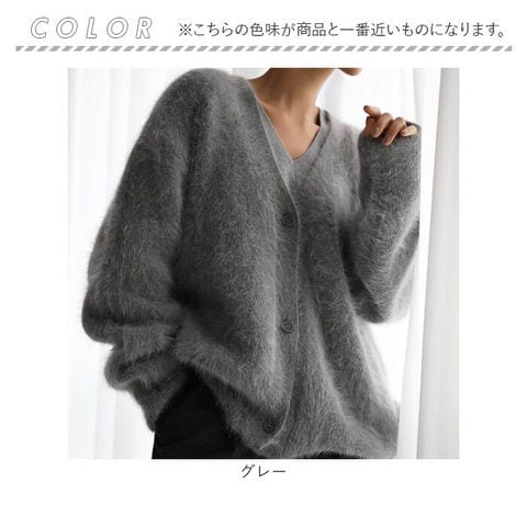 ニットカーディガン 毛足長い 暖かい【グレー】