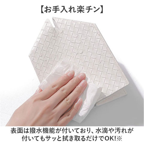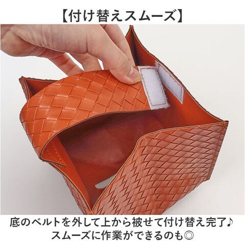 | 商品説明 | 【オシャレなインテリアに変身】いつものティッシュがオシャレなインテリアに♪正方形のティッシュケースが新発売。【レザー調の見た目でオシャレに】ティッシュがオシャレなアイテムに♪合皮を編み込んだナチュラルでリゾート風な仕上がり。【様々なインテリアに溶け込む】装飾がないシンプルなデザイン♪どんなインテリアとも相性抜群【付け替えスムーズ】底のベルトを外して上から被せて付け替え完了♪スムーズに作業ができるのも◎【お手入れ楽チン】表面は撥水機能が付いており、水滴や汚れが付いてもサッと拭き取るだけでOK!※【注意事項】※完全防水ではございません。 |