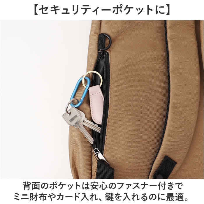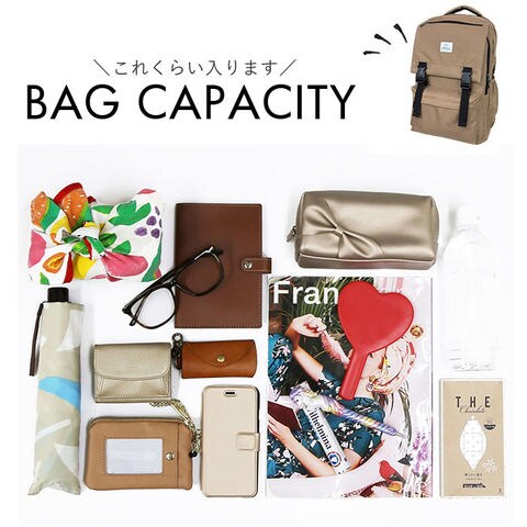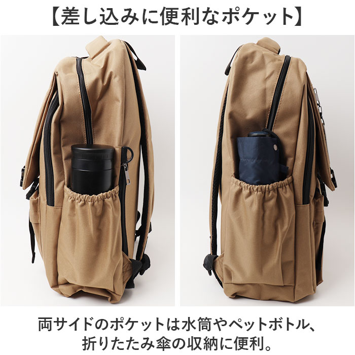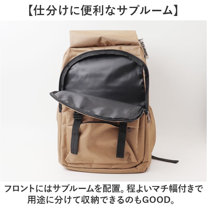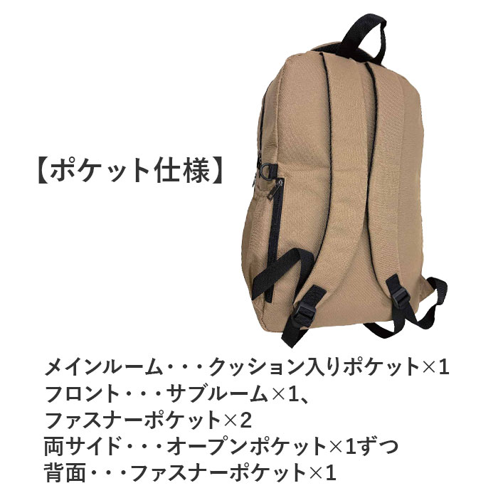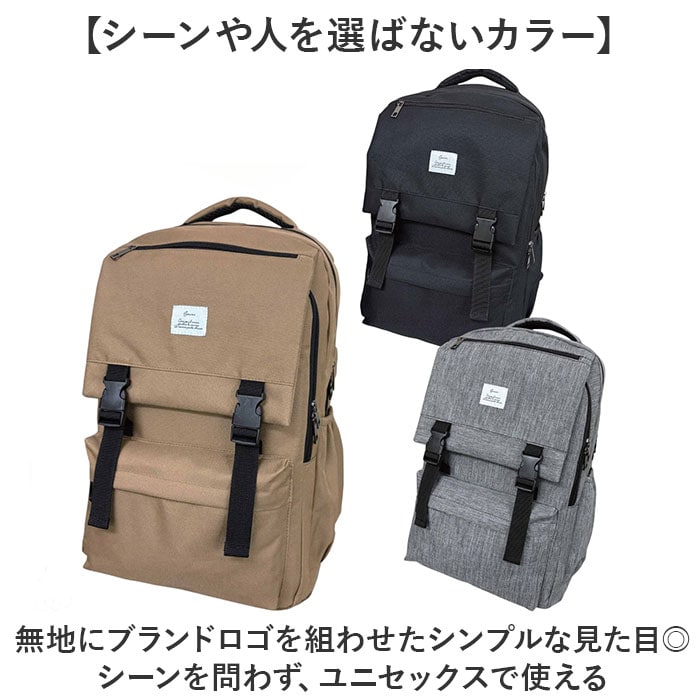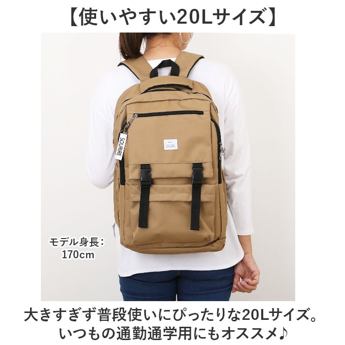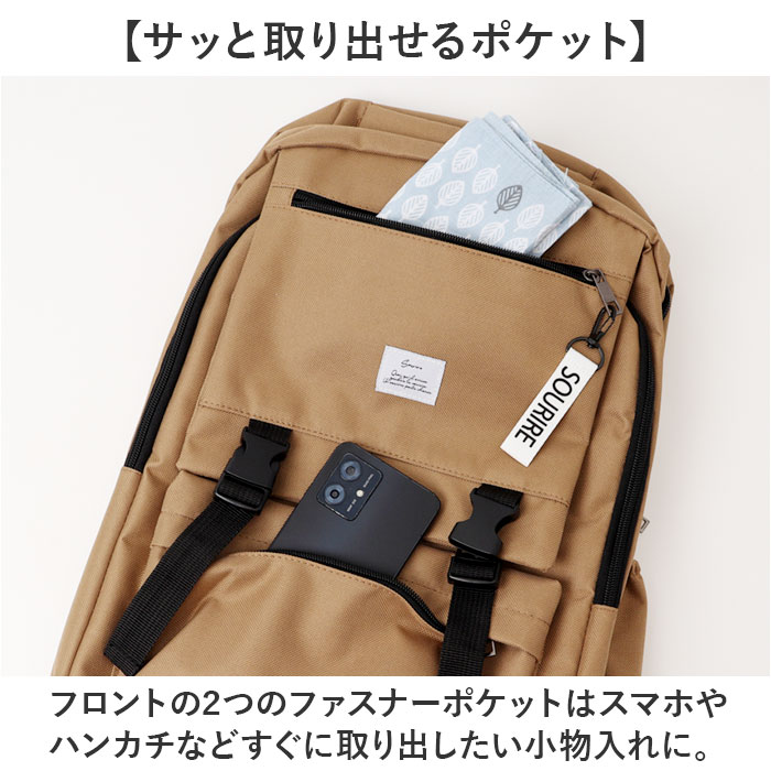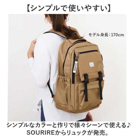 | 商品説明 | 【シンプルで使いやすい】シンプルなカラーと作りで様々シーンで使える♪SOURIREからリュックが発売。【使いやすい20Lサイズ】大きすぎず普段使いにぴったりな20Lサイズ。いつもの通勤通学用にもオススメ♪【A4サイズ対応】A4サイズのクリアファイルがすっぽり入るメイン収納。大切な書類やテキストの収納もOK!【お弁当箱やポーチも入る】マチ幅もしっかり設け、お弁当箱やコスメポーチの収納もラクラク。【仕分けに便利なサブルーム】フロントにはサブルームを配置。程よいマチ幅付きで用途に分けて収納できるのもGOOD。【クッション入りのポケット】メインルームには、クッション入りのポケットを配置しタブレットやノートPCを入れても◎【サッと取り出せるポケット】フロントの2つのファスナーポケットはスマホやハンカチなどすぐに取り出したい小物入れに。【差し込みに便利なポケット】両サイドのポケットは水筒やペットボトル、折りたたみ傘の収納に便利。【セキュリティーポケットに】背面のポケットは安心のファスナー付きでミニ財布やカード入れ、鍵を入れるのに最適。【ちょっとした持ち出しに便利】公共機関の移動やすぐに持ち出したい時に便利な上部ハンドル付き。【ストラップの取り付けに便利】背面ポケットの上部にはDカンを配置。ストラップやチェーンなどの取り付けも可能な作り◎【長時間背負っていても負担軽減】ショルダー裏面にはメッシュクッションを配置。長時間背負っていても蒸れにくく、負担も軽減【シーンや人を選ばないカラー】無地にブランドロゴを組わせたシンプルな見た目◎シーンを問わず、ユニセックスで使える【ポケット仕様】メインルーム・・・クッション入りポケット×1フロント・・・サブルーム×1、ファスナーポケット×2両サイド・・・オープンポケット×1ずつ背面・・・ファスナーポケット×1 |