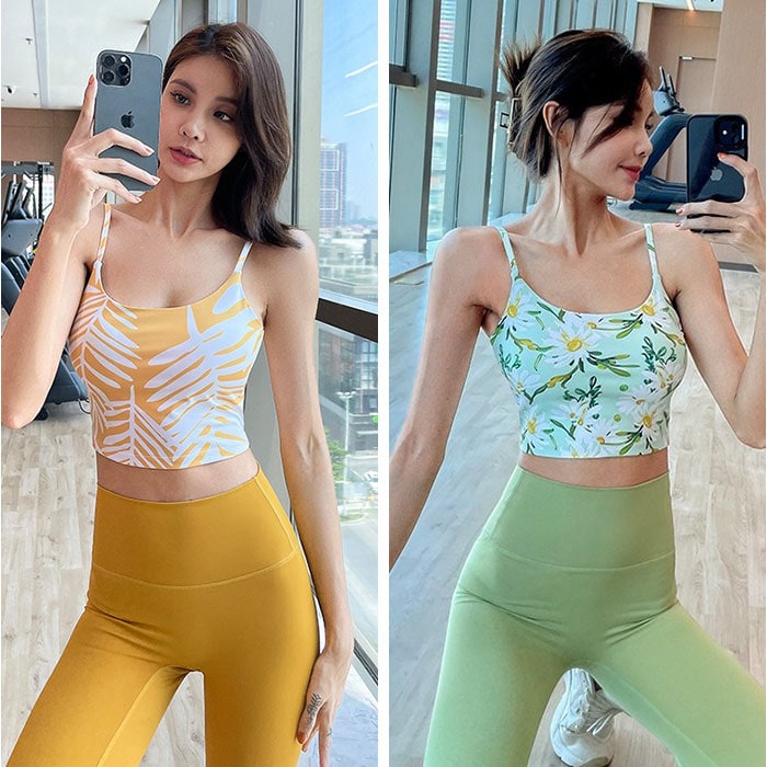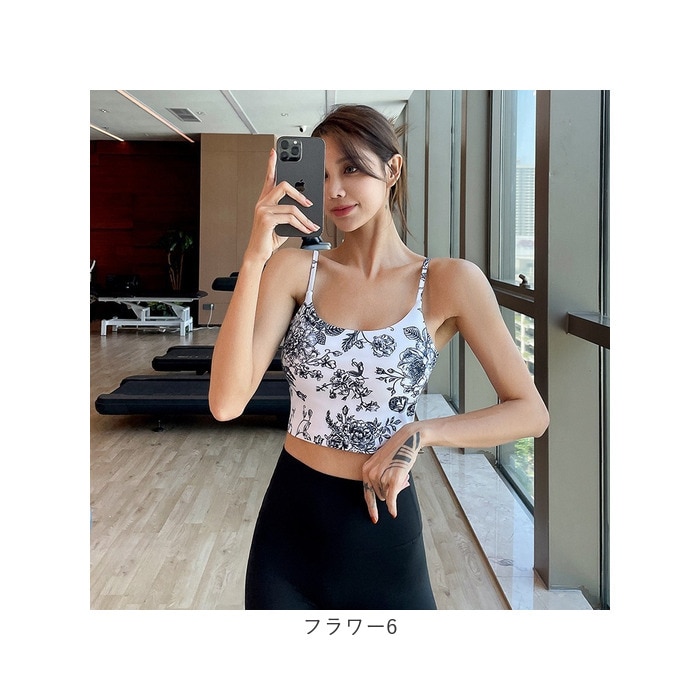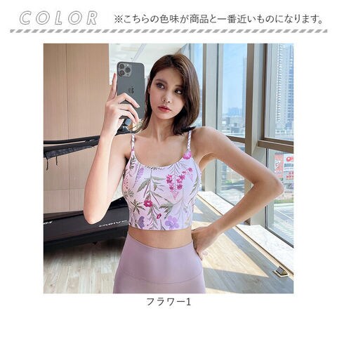 スポーツブラ ヨガウェア カップ付【フラワー5】【XLサイズ】