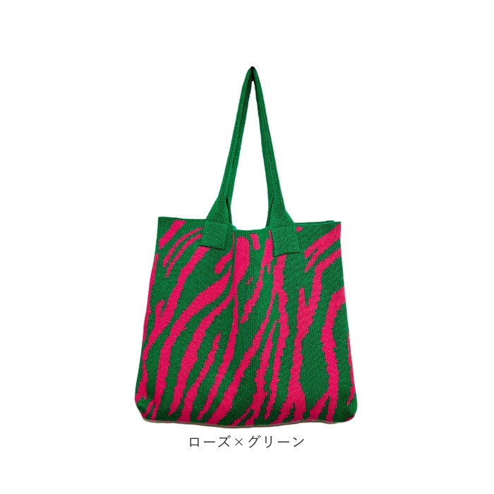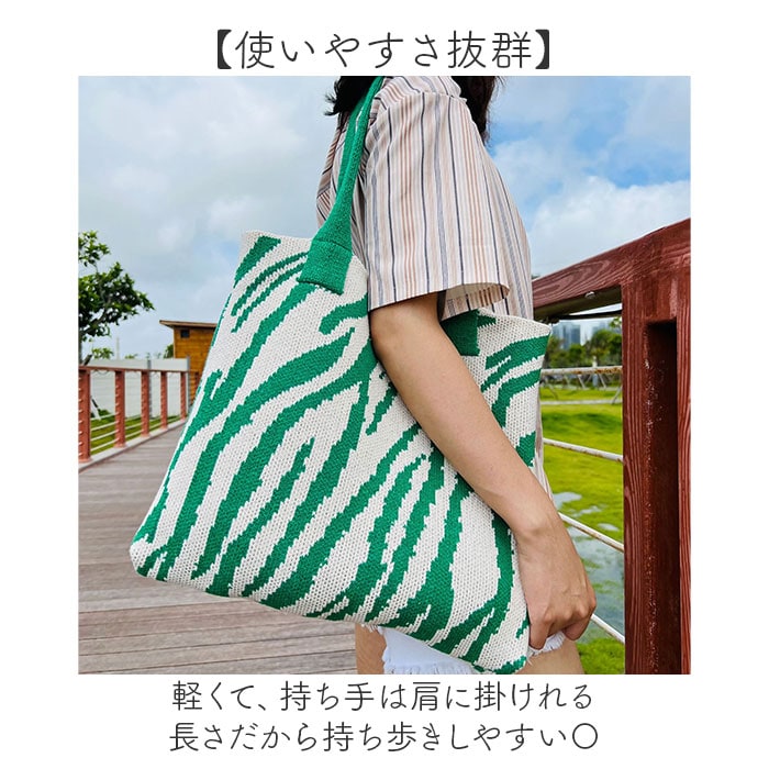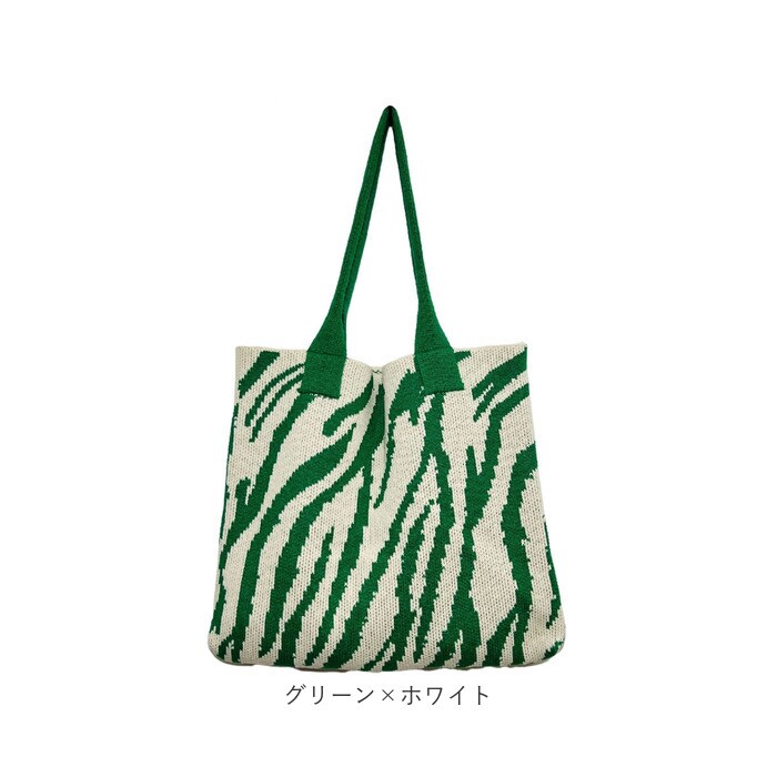 ニットバッグ トートバッグ 大容量かばん【グリーン×ホワイト】