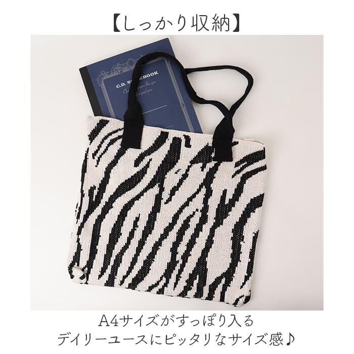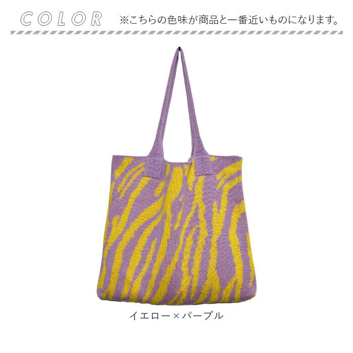 | 商品説明 | 【大人可愛い雰囲気漂う】鮮やかなカラーリングのニットトートバッグ。【ゼブラ柄がアクセントに】バイカラーのデザインがポイント!シンプルなコーディネートの差し色としても◎【しっかり収納】A4サイズがすっぽり入るデイリーユースにピッタリなサイズ感♪【使いやすさ抜群】軽くて、持ち手は肩に掛けれる長さだから持ち歩きしやすい〇 |