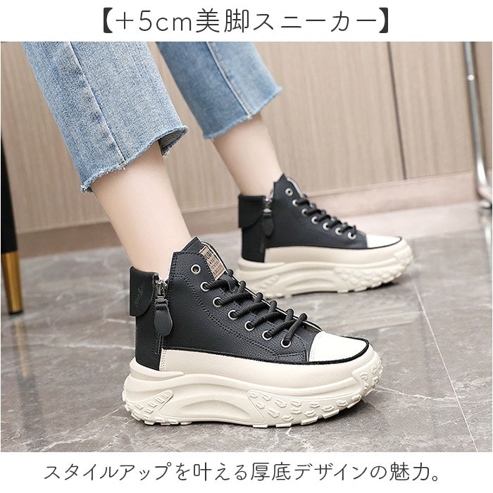 | 商品説明 | 【+5cm美脚スニーカー】スタイルアップを叶える厚底デザインの魅力。【美脚・脚長効果】厚底デザインで自然にスタイルアップを叶える嬉しい設計!【美シルエットの演出力】ボリュームソールが脚のラインを美しく演出する頼れる存在◎【サイドジップの楽々仕様】ジッパー付きで脱ぎ履きがスムーズにできる快適な機能性〇【どんなコーデにも対応】スカートにもパンツにも合わせやすい万能なデザイン♪【一年中活躍の優秀さ】オールシーズン使える頼もしいカジュアルシューズ。 |