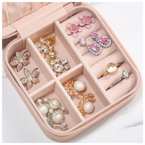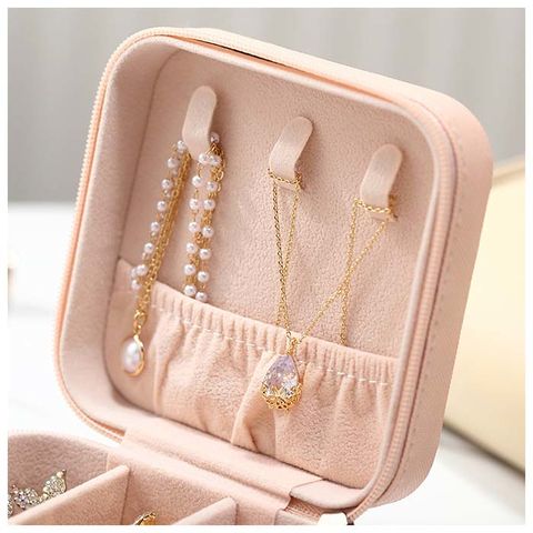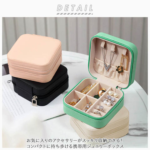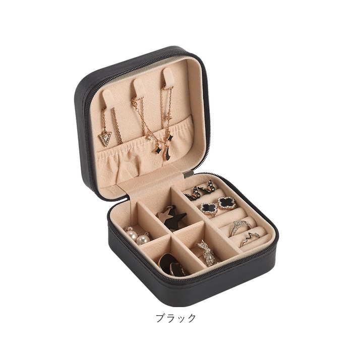| 商品説明 | お気に入りのアクセサリーがスッキリ収納できる!コンパクトに持ち歩ける携帯用ジュエリーボックス。いつの間にか増えてしまったピアスやネックレス等のアクセサリーを、スタイリッシュなフェイクレザーのボックスにひとまとめ!フタ裏に、ネックレスフック×3、オープンポケット×1を装備。ボックス下右側は手触りの柔らかいベロア調素材で仕上げたリング収納用スロット×7、左側スペースのプレートは取り外しでき、大きい石が付いたブローチや腕時計の収納も可能◎大切なジュエリーたちをキズやホコリからも守ってくれる優れもの♪ |