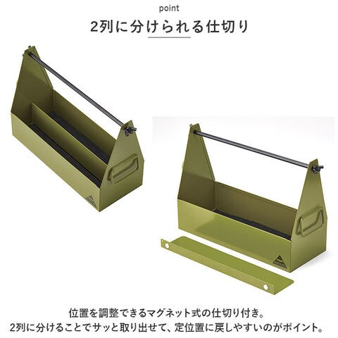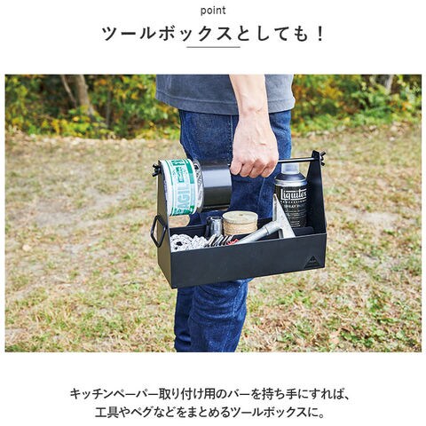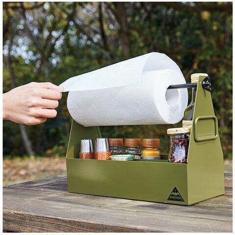 | 商品説明 | アウトドアシーンで大活躍!スパイス&キッチンペーパーが新登場。【屋外での調理に】スパイスボトルやオイル類、キッチンペーパーをすっきりまとめて収納できる♪耐荷重約8kgのボックス。【2列に分けられる仕切り】位置を調整できるマグネット式の仕切り付き。2列に分けることでサッと取り出せて、定位置に戻しやすいのがポイント。【衝撃から保護】内側や底面にお好みで貼り付けできる、クッションシールが付属。取り出しや持ち運び時の衝撃や傷付きをガード。【大型のキッチンペーパー対応サイズ】バーは両サイドの蝶ネジを外して、簡単に調整可能。約29cm幅までのキッチンペーパーに対応。【持ち運びに便利】両サイドにハンドル付きで、ササッと持ち運べちゃう♪【ツールボックスとしても!】キッチンペーパー取り付け用のバーを持ち手にすれば、工具やペグなどをまとめるツールボックスに。 |
