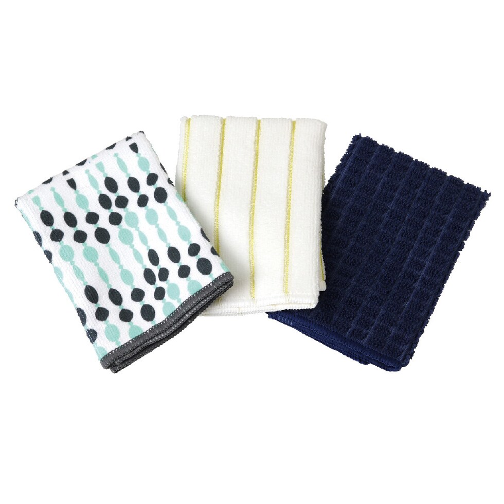 | 商品説明 | 乾いた状態では『超極細繊維』が静電気を発生させて細かいホコリを絡めとり、水で湿らせた状態では吸水性がアップするとともに、汚れをしっかりとかき出してくれるので拭き掃除に最適です。絞ればすぐに乾燥してくれるのも嬉しいポイント。超極細繊維の高いクリーニング効果により洗剤の使用が減り、余分な排水をおさえるので地球環境にも優しい素材です。キッチン、リビング、窓にお風呂。シーンや気分に合わせて使い分けできる3枚セットです。出しっぱなしでも気にならないかわいいデザイン。実用的なのでご挨拶などのプチギフトとしても喜ばれます。 |