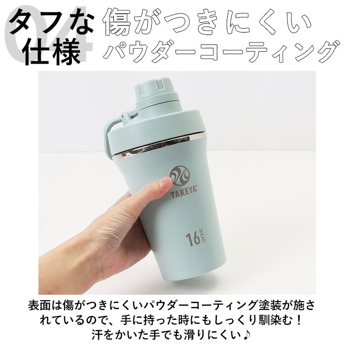 | 商品説明 | シェーカーや普段使いの水筒として使える♪「タケヤフラスク スパウトタンブラー」0.47Lサイズが新登場。【ペットボトルのように直飲みOK】ダイレクトに飲めるスクリュータイプ♪飲み口が広く、プロテインやスムージーなど粘度の高い飲み物にも最適!【安心のロック機能付き】フタにはロック機能を装備。飲む時に邪魔にならず、落としたり紛失の心配も不要。【シェーカーにぴったりな形状】粉末が混ざりやすい丸型の底。しっかりシェイクできて溶け残りにくく、美味しく作れるのがポイント。【準備もお手入れもスムーズな広口設計】タンブラー本体は、粉末などもサッと入れやすい広口仕様。底まで手を入れて洗浄しやすく、いつも清潔に保てるのが嬉しい!【保冷機能付き】保冷効果のあるステンレス製。屋外でのトレーニング時にも最適!【便利なキャリーハンドル】荷物が多い時は指に引っ掛けたり、お手持ちのカラビナを使ってリュックに吊り下げてもOK。(※フタがしっかり閉まっていることを確認してください。)【はがれにくいパウダーコーティング】表面は傷がつきにくいパウダーコーティング塗装が施されているので、手に持った時にもしっくり馴染む!汗をかいた手でも滑りにくい♪【様々なシーンで】普段使いしやすい0.47Lサイズ。ドリンク作りから普段使いのタンブラー、スポーツやトレーニングシーンなどでも大活躍。 |