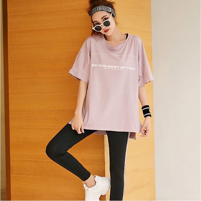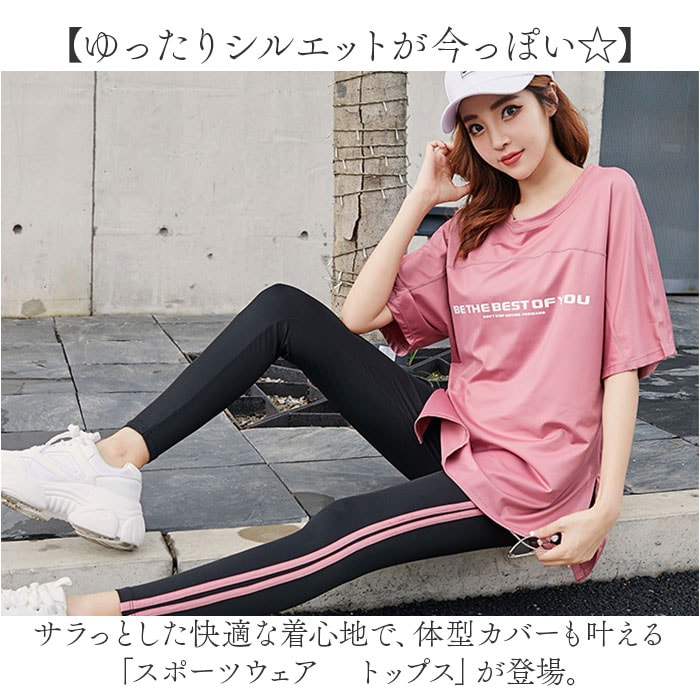 スポーツウェア 半袖 ヨガ 速乾 レディース【ライトピンク】【XL】