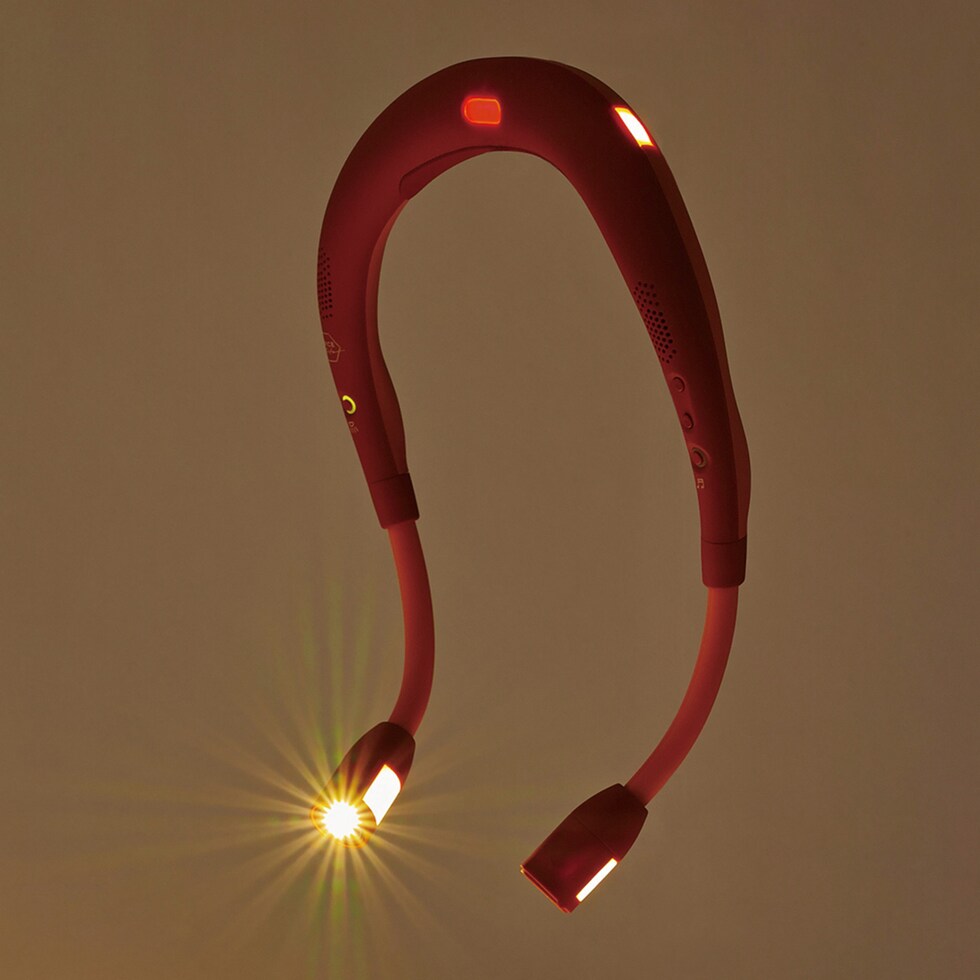 | 商品説明 | 夜間の歩行時に頼りになるハンズフリーのウォーキングライト。首から掛けるタイプの簡単装着で両手が自由になり、さらに音楽を楽しめるBluetoothスピーカーや、首元が温かくなるウォーマー機能を搭載。点滅と点灯を選択できるLEDライトは、先端(リーディングライト)、サイド、首元の3ヶ所に付いている。自動車や自転車へ自分の存在を知らせるためや、足元の危険を察知するためにとても役立つ。また、暗い夜道での防犯対策にもなる。左右の先端が磁石でつくので、輪になり落下防止に。身を守りながら、Bluetooth機能で音楽を楽しめるのも嬉しいポイント。耳をふさがないので、周りの音も聞こえ安心。首元についたウォーマーは約1分で39℃に温まり、30分経過したら自動でOFFになるタイマー機能付き。犬の散歩、ウォーキング、アウトドア、自転車に乗るときなどに活躍。また、リーディングライトは家の中でもまわりに気を遣うことなく好きな場所で使えるので、寝室での読書、手芸やDIYなど手元を照らしての作業にもおすすめ。単一機能の連続使用時間はスピーカーは約12時間、LEDライトは約21時間、ウォーマーは30分×16回。(スピーカー、ライト、ウォーマー同時使用約3時間)USB充電式(ニッケル水素蓄電池)で最大4時間で充電が完了。約500回の使用が可能。使い方はアイデア次第で無限大、快適なライフスタイルを。 |