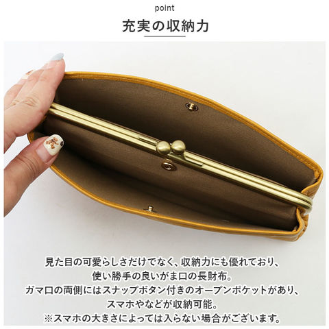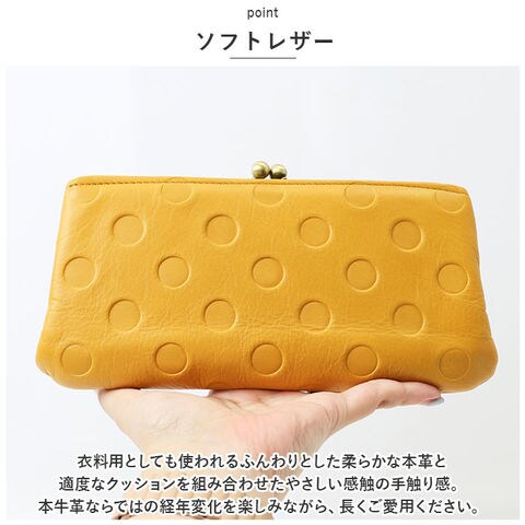 | 商品説明 | 上質なふんわり柔らかいカウレザーを使用したがま口長財布が登場。【zucchero/ズッケロシリーズ】主な素材にナチュラルレザーを使用したライン。ナチュラルレザーならではのテイストと、現代的なスパイスを取り入れたカジュアルさを両立。【シンプルなデザイン】シンプルで飽きのこないベーシックなデザインなっていますが、ドット柄がポイントの可愛らしいデザイン。【充実の収納力】見た目の可愛らしさだけでなく、収納力にも優れており、使い勝手の良いがま口の長財布。ガマ口の両側にはスナップボタン付きのオープンポケットがあり、スマホやなどが収納可能(スマホの大きさによっては入らない場合がございます。)【ソフトレザー】衣料用としても使われるふんわりとした柔らかな本革と適度なクッションを組み合わせたやさしい感触の手触り感。本牛革ならではの経年変化を楽しみながら、長くご愛用ください。【ポケット仕様】メイン:カード入れ×10、お札入れ×2、小銭入れ×1 フリーポケット×2前面:スナップボタンつきオープンポケット×1背面:スナップボタンつきオープンポケット×1 |