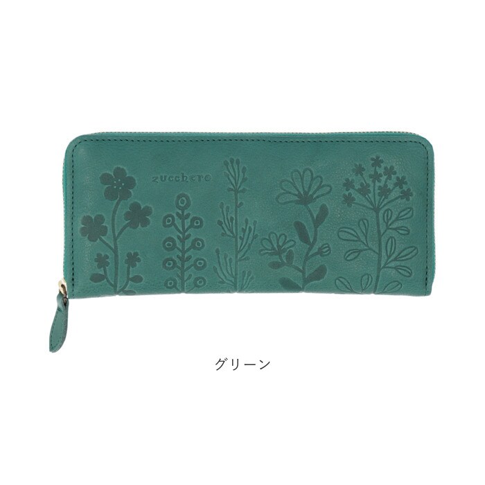 zucchero ズッケロ 花柄デザインラウンド長財布【グリーン】