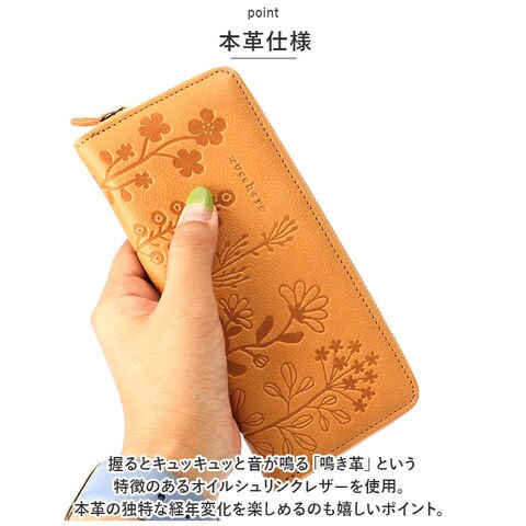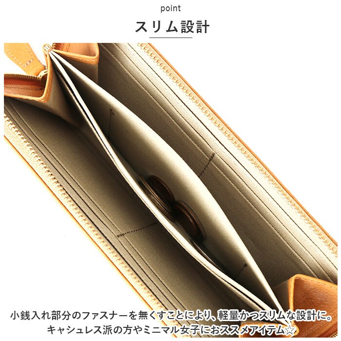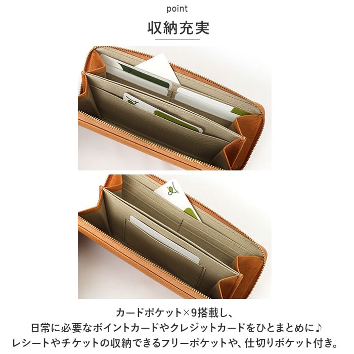 | 商品説明 | お花の型押しが可愛い♪「zucchero」からロングウォレットが登場。【zuccheroシリーズ】使う程に味わいが深まるナチュラルな雰囲気◎ナチュラルレザーならではのテイストと、現代的なスパイスを取り入れたカジュアルさを両立。【本革仕様】握るとキュッキュッと音が鳴る「鳴き革」という特徴のあるオイルシュリンクレザーを使用。本革の独特な経年変化を楽しめるのも嬉しいポイント。【スリム設計】小銭入れ部分のファスナーを無くすことにより、軽量かつスリムな設計に。キャシュレス派の方やミニマル女子におススメアイテム☆【ラウンドファスナー】ガバッと大きく開くラウンドファスナー構造。必要な時にサッと開くことができ、お会計時もスムーズに!【収納充実】カードポケット×9搭載し、日常に必要なポイントカードやクレジットカードをひとまとめに♪レシートやチケットの収納できるフリーポケットや、仕切りポケット付き。【ポケット仕様】メイン収納・・・カード入れ×9、お札入れ×2、フリーポケット×3 |