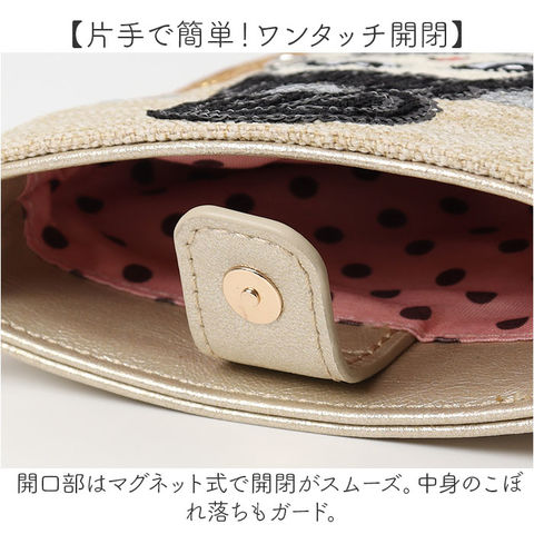 | 商品説明 | 【ミニマルスタイルにおすすめ】身軽にお出かけできる!「Lyre リタちゃん 2WAYスマホショルダーバッグ」が新登場。【小さな幸せを届けるLyre】手に取ると思わず笑顔になる!可愛さ・煌めきを全ての年代の女性にお届け♪【存在感ばっちりな可愛いリタちゃん】刺繍にラメ感のあるスパンコールやパーツ。オリジナルキャラクターのリタちゃんがアイコン☆【スリム&コンパクトで使い勝手抜群】お出かけ時にサッと持ち出せるサイズ感。スマホがサクッと収納できる縦型タイプ。【お好みに合わせてスタイルチェンジ】短いハンドルで手持ち。長いショルダーで肩掛けや斜め掛けもできる2WAY仕様。(※)それぞれナスカンで取り外し可能です。【片手で簡単!ワンタッチ開閉】開口部はマグネット式で開閉がスムーズ。中身のこぼれ落ちもガード。【必要最低限のアイテムをIN】コインケースやカードケース、鍵などを入れてもOK。貴重員をひとまとめに。【サクッと取り出せて迷子知らず】背面のポケットには、使用頻度の高い小物を。バッグの中で探す手間が不要。【メインにもサブにも!使い方自在】ちょっとそこまではこれ1つで、旅行などのサブバッグにも。ポケットのない洋服でも安心◎【コーデにアクセントをプラス】いつものコーデがパッと華やぐ、個性の光るデザインが魅力。内生地までおしゃれ♪【ポケット仕様】背面:オープンポケット×1 |