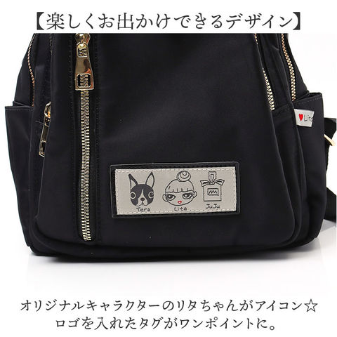 | 商品説明 | 【お出かけの相棒にぴったり】サッと持ち出せて、使い勝手抜群。「Lyre リタちゃん ナイロン2WAYリュック」。【小さな幸せを届けるLyre】手に取ると思わず笑顔になる!可愛さ・煌めきを全ての年代の女性にお届け♪【楽しくお出かけできるデザイン】オリジナルキャラクターのリタちゃんがアイコン☆ロゴを入れたタグがワンポイントに。【ころんと可愛いミニサイズ】手軽に使いやすく、人混みでも邪魔になりにくい!マストアイテムがすっきりひとまとめ。【お好みに合わせてスタイルチェンジ】リュックとしてはもちろん!ショルダーバッグとしても使える2WAYタイプ。【ガバっと開くダブルファスナー】左右どちらからもオープン!出し入れしやすく、ファスナーを閉じれば、プライバシーも確保◎【A5サイズもペットボトルもOK】A5対応、500mlのペットボトルもすっぽり。マチを程よく設け、見た目以上の収納力◎【サッと取り出せて迷子知らず】内側・外側合わせて6個のポケットを配置。バッグの中で小物を探す手間が不要。【体に負担をかけず、身軽にお出かけ】ガシガシ使えるナイロン素材。軽やかな使い心地で疲れにくく、アクティブシーンでも重宝。【お気に入りを選べるカラー】シンプルなブラックと、個性の光る柄物。なりたいイメージに合わせてチョイスして♪【ポケット仕様】内側:ファスナーポケット×1前面:ファスナーポケット×2サイド:オープンポケット×2背面:ファスナーポケット×1 |