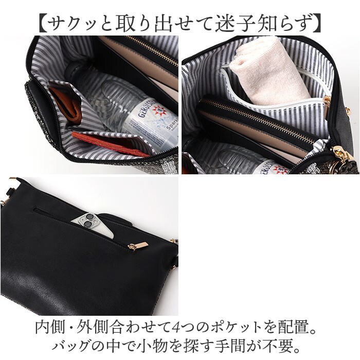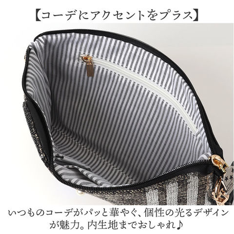 | 商品説明 | 【いつものお出かけがもっと楽しく♪】サッと持ち出せる!「Lyre リタちゃん 薄マチショルダーバッグ」が新登場。【小さな幸せを届けるLyre】手に取ると思わず笑顔になる!可愛さ・煌めきを全ての年代の女性にお届け♪【存在感ばっちりな可愛いリタちゃん】刺繍にラメ感のあるスパンコールやパーツ。オリジナルキャラクターのリタちゃんがアイコン☆【ちょっとしたお出掛けに便利】マストアイテムがすっきり収まる、スリムなフォルム。お買い物やレジャーでも!【お好みに合わせてスタイルチェンジ】長いショルダーで肩掛けや斜め掛け。短いハンドルでハンドバッグとしても持てる2WAY仕様。(※)それぞれナスカンで取り外し可能です。【開閉スムーズ、安心の天ファスナー】ガバっと開いて取り出しやすく、ファスナーを閉じればプライバシーも確保。【長財布やペットボトルもすっぽり】横幅があり、長財布や500mlペットボトルもIN。薄マチながら程よい収納力で使いやすい♪【サクッと取り出せて迷子知らず】内側・外側合わせて4つのポケットを配置。バッグの中で小物を探す手間が不要。【コーデにアクセントをプラス】いつものコーデがパッと華やぐ、個性の光るデザインが魅力。内生地までおしゃれ♪【アレンジできる替えイヤリング付き】イヤリングはカニカンで簡単着脱。お好みで付け替えできるイヤリングが付属。【ポケット仕様】内側:ファスナーポケット×1、オープンポケット×2背面:ファスナーポケット×1 |