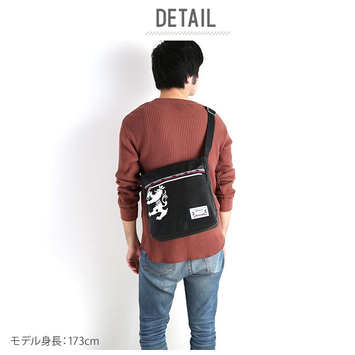 | 商品説明 | 1914年、イギリス海軍の制服ブランドとしてスタート。その後、英国のみならずイタリアやドイツなどの欧州諸国においてハイファッションブランドとしての認知も高まり、現在、日本も含む全世界40ヵ国で展開する、インターナショナルブランド。Admiralの【ADGA】シリーズのショルダーバッグ。獅子の刺繍が印象的なデザインで、気軽に使えるショルダーバッグ。B5サイズも入り500mlのペットボトルや長財布を持ち歩くのにちょうどいいサイズ感。内側部分にはクッションポケットが1つ、オープンポケットが2つ、表面にはファスナーポケットが1つと、小分けなどもしやすい仕様。ショルダーベルトも長さ調整が可能で、肩掛け~ななめ掛けが可能。 |