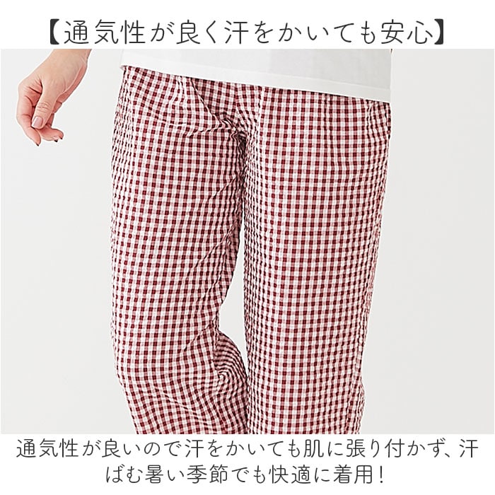 | 商品説明 | 【軽くゆったりとした穿き心地♪】真夏も涼しく快適に過ごせる!「爽快肌さらリラックスパンツ」が新発売。【肌触りサラッとドライ生地】凹凸感があるサッカー生地。凹凸が肌に直接触れる面積を減らし、涼しさを感じさせる◎【通気性が良く汗をかいても安心】通気性が良いので汗をかいても肌に張り付かず、汗ばむ暑い季節でも快適に着用!【軽くシワになりにくい】生地のシボと綿混紡生地で、シワが目立ちにくく軽いので旅行などに持っていくのも♪【様々なコーデに活躍する七分丈】長すぎず短すぎない七分丈のパンツ。チュニックやワンピースとも合わせやすい。【ゆったりシルエットなのが◎】リラックスできるゆったりシルエット。締め付け感がないので就寝時にもオススメ♪【脱ぎ穿き楽ちんなゴム仕様】ウエストは快適に穿ける総ゴム使用。お着替えのしやすさもポイント。【自分サイズにフィット】ウエスト内側にゴム調節ができるホール付き!フィットするサイズに調節可能。【スマホやヘアゴムをIN】ポケットを搭載。スマホやヘアゴムなどちょっとした小物を入れるのに最適。 |
