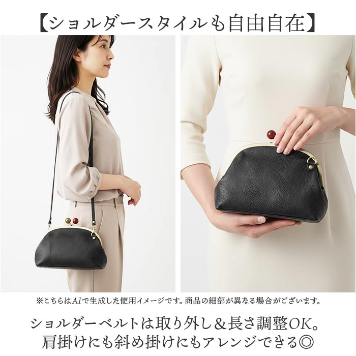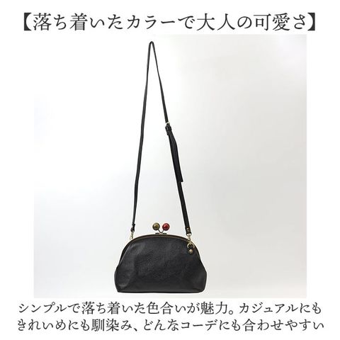 | 商品説明 | 【レトロ可愛いがま口スタイル】愛らしいフォルムが印象的。パチンッと開く心地よい音に癒される「zucchero がま口ショルダー」【ナチュラルレザーの上品な味わい】シボ感のある本革はナチュラルな風合い。バイカラーの口金がアクセントになり、大人の遊び心をプラス。【小ぶりなのにしっかり収納】コロンとした見た目に、スマホや長財布がすっぽり収まる絶妙なサイズ感。【ショルダースタイルも自由自在】ショルダーベルトは取り外し&長さ調整OK。肩掛けにも斜め掛けにもアレンジできる◎【落ち着いたカラーで大人の可愛さ】シンプルで落ち着いた色合いが魅力。カジュアルにもきれいめにも馴染み、どんなコーデにも合わせやすい【旅にも連れて行きたくなる相棒】軽やかな使い心地で、旅行のサブバッグにもぴったり。デイリーにも旅先にも活躍! |