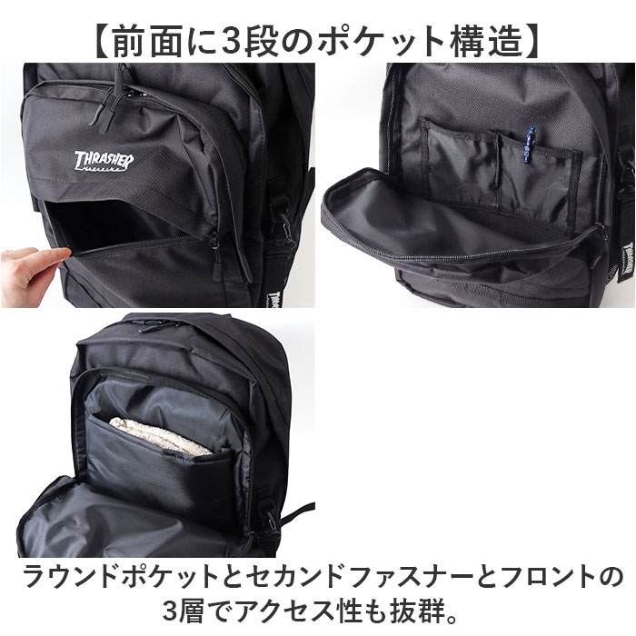 THRASHER スラッシャー バックパック 35L【BKxWH】