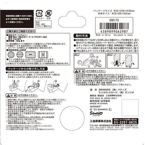 | 商品名 | キャラクター スマホホルダー SWIMMER×SANRIO |