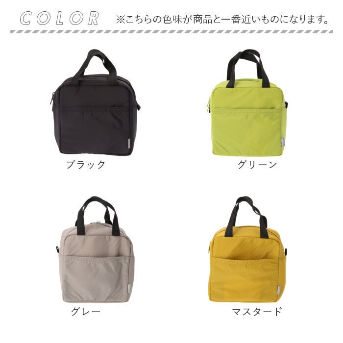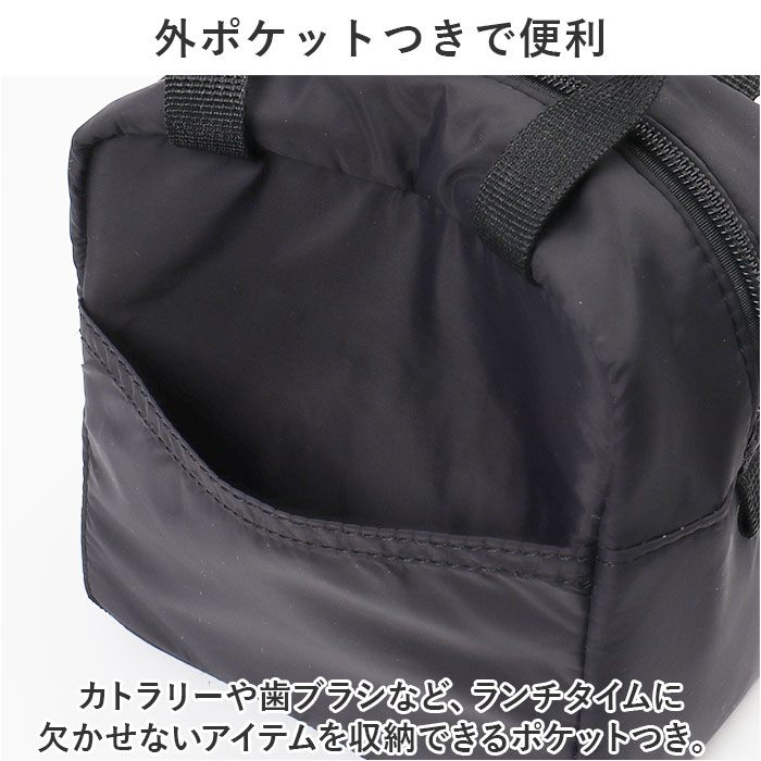 | 商品説明 | 無駄のないコンパクトサイズ☆シンプルでおしゃれな「クーラーバッグ」が登場。【スクエア&コンパクトで使いやすい】お弁当、350mlくらいのタンブラー、カトラリーが入る、スクエア型のコンパクトバッグ。【冷たさとあたたかさをキープ】断熱材を使用したアルミ仕様の内生地が、温度をキープしてくれる。通年使えるアイテム。【コの字ファスナー付き】大きく開くコの字ファスナーで、出し入れがしやすい。バッグ内が見えないのも嬉しいポイント。【外ポケットつきで便利】カトラリーや歯ブラシなど、ランチタイムに欠かせないアイテムを収納できるポケットつき。【シンプル&ナチュラルでおしゃれ】使用シーンや性別年齢を選ばない、シンプルなデザイン。ナチュラルな雰囲気がおしゃれ☆【ポケット仕様】外側:オープンポケット×1 |