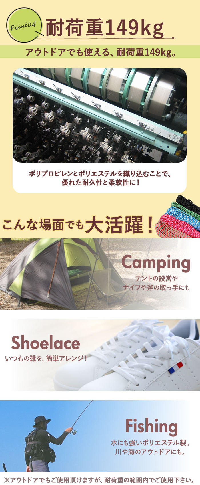 | サイズ | [長さ]約31m/[太さ:直径]約4mm ※サイズは当店計測の実寸サイズです。実際の商品ならびにメーカー表記サイズとは多少の誤差が生じる場合がございます。あらかじめご了承ください。 |