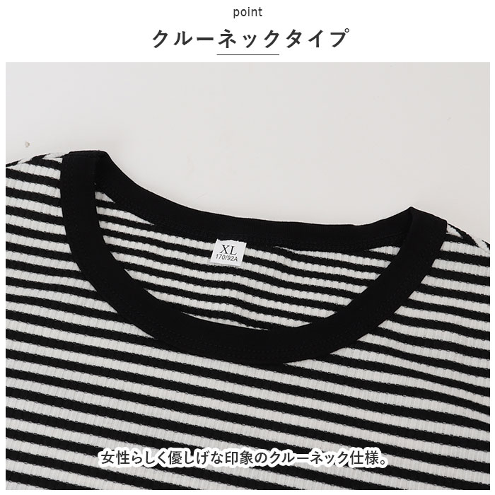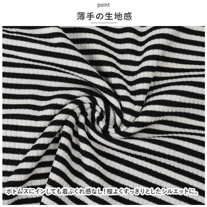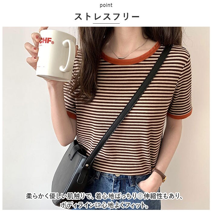 | 商品説明 | 着回し力抜群!カジュアルコーデにぴったりなTシャツが登場。【カジュアルコーデの定番】リブ生地×誰でも着こなしやすいボーダーデザイン♪シンプルなボトムスと合わせるだけで、おしゃれにキマるアイテム。【ストレスフリー】柔らかく優しい肌触りで、着心地ばっちり◎伸縮性もあり、ボディラインに心地よくフィット。【薄手の生地感】ボトムスにインしても着ぶくれ感なし!程よくすっきりとしたシルエットに。【クルーネックタイプ】女性らしく優しげな印象のクルーネック仕様。【お気に入りをチョイス】挑戦しやすいカラー&お好みで選べるサイズ展開。色違いで揃えたり、サイズアップしてオーバー気味に着てもOK! |