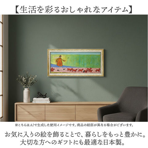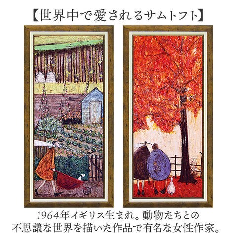 | 商品説明 | 【絵本のワンシーンのようなアート】ノスタルジックな優しいタッチ♪絵と額がセットでそのまま飾れるサムトフト アートフレーム。【世界中で愛されるサムトフト】1964年イギリス生まれ。動物たちとの不思議な世界を描いた作品で有名な女性作家。【インテリアに調和するデザイン】表面には油絵のような質感の特殊ゲル加工。アンティーク調のフレームと相性抜群!【空間にアクセントをプラス】フレームの吊り金具に、付属の紐を結びつけて壁掛け。幅があり、存在感のあるおおきさ。【保護ガラス不要で軽やかなつくり】表面に加工を施すことで、色彩がより鮮やかに。保護用のガラスいらずで壁掛けもラクラク。【サッと拭き取れてお手入れ簡単】耐久性のある透明ゲルコーティング。乾いた布で、ササッと汚れを拭き取ることが可能。【生活を彩るおしゃれなアイテム】お気に入りの絵を飾ることで、暮らしをもっと豊かに。大切な方へのギフトにも最適な日本製。 |