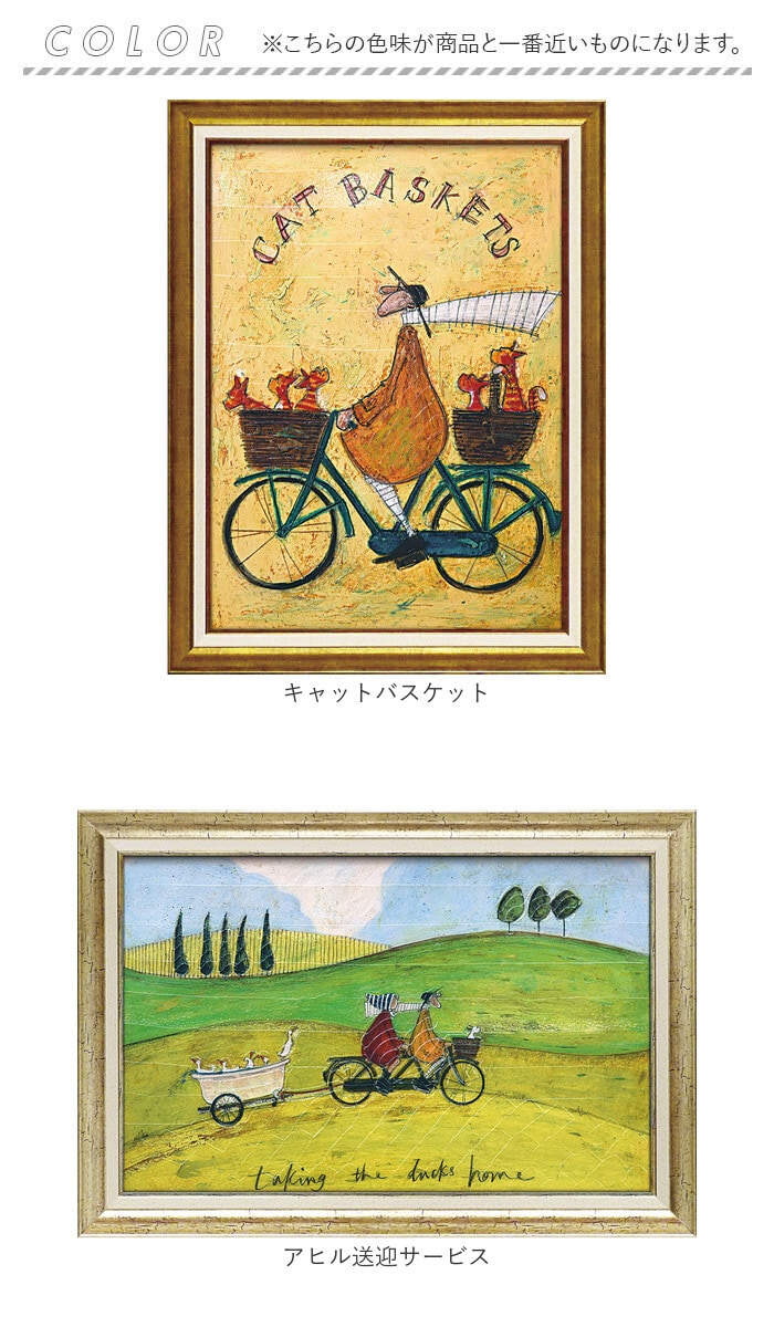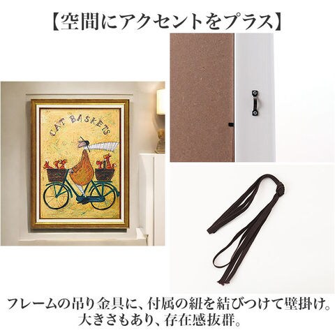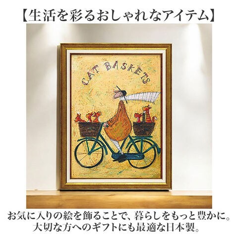 | 商品説明 | 【絵本のワンシーンのようなアート】ノスタルジックな優しいタッチ♪絵と額がセットでそのまま飾れるサムトフト アートフレーム。【世界中で愛されるサムトフト】・1964年イギリス生まれ。動物たちとの不思議な世界を描いた作品で有名な女性作家。【インテリアに調和するデザイン】表面には油絵のような質感の特殊ゲル加工。アンティーク調のフレームと相性抜群!【空間にアクセントをプラス】フレームの吊り金具に、付属の紐を結びつけて壁掛け。大きさもあり、存在感抜群。【保護ガラス不要で軽やかなつくり】表面に加工を施すことで、色彩がより鮮やかに。保護用のガラスいらずで壁掛けもラクラク。【サッと拭き取れてお手入れ簡単】耐久性のある透明ゲルコーティング。乾いた布で、ササッと汚れを拭き取ることが可能。【生活を彩るおしゃれなアイテム】お気に入りの絵を飾ることで、暮らしをもっと豊かに。大切な方へのギフトにも最適な日本製。 |