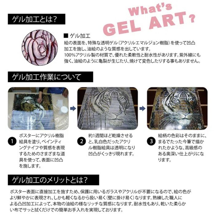 | 素材 | [材質]樹脂フレーム [仕様]絵の表面を特殊ゲル加工 |