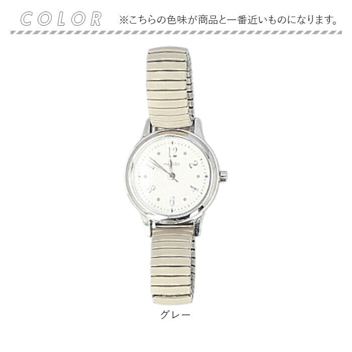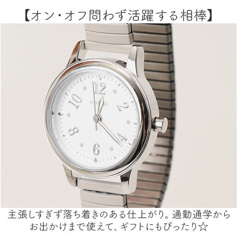 | 商品説明 | 【アクセサリー感覚でおしゃれに】まるでブレスレットのような着用感♪手元にスッと馴染む「腕時計 デビー」。【ワンタッチで簡単に着脱OK】ソフトでぐ~んと伸びるじゃばらタイプで、付け外しがスムーズ。忙しい朝も一瞬で装着完了。【視認性の高いシンプルな文字盤】時刻を確認しやすい文字盤デザイン。文字盤ケース横のつまみで、簡単に時刻調節が可能。【安心の日本製ムーブメントを採用】ムーブメントは高い性能を誇る日本製。1秒ごとに時を刻むステップ秒針。【オン・オフ問わず活躍する相棒】主張しすぎず落ち着きのある仕上がり。通勤通学からお出かけまで使えて、ギフトにもぴったり☆ |