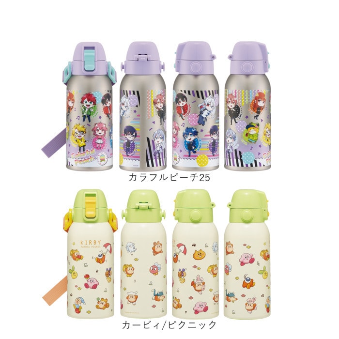 | 商品説明 | 【お出かけの相棒にぴったり】可愛らしいキャラクターデザイン☆持ち歩きに便利な「ステンレスマグボトル 600ml」。【真空二重構造で冷たさキープ】本体内側と外側が真空断熱された、ステンレス2重構造。飲み頃温度を保つ、保冷専用タイプ。【片手で簡単ワンプッシュオープン】キャップ部分は、片手でワンプッシュ。屋外などでも使いやすい、直飲みボトル。【キャップに安全ロック機能を搭載】プッシュボタンの上部を指でスライドするだけの、安全ロック機能付き。誤作動をガード。【飲みやすいキャップロック設計】キャップは後ろに倒した位置で固定。飲む時に戻らず、鼻に当たる心配も不要。【ゴクゴク水分補給できる形状】斜め形状の飲み口。口当たりも滑らかで、ダイレクトに飲みやすいのがポイント。【しっかり入って頼れるサイズ】容量は600ml!通学や遠足、レジャーなど色んなシーンで重宝する大きさ。【外出前のドリンク準備もラクラク】本体はドリンクを注ぎやすい、ワイド口径。一般的な家庭用製氷機で作った氷もすっぽり。【見つけやすいカラーパッキン仕様】色を付けた、取り外し可能なパッキン。飲み口のパッキンは、上部から付け忘れを一目で確認。【傷や衝撃から守る保護カバー】底面はシリコーンゴム製。ボトル底にかかる衝撃を防ぎ、傷つきにくい!【持ち運びに便利なショルダーベルト】ショルダーを取り付ければ肩掛け可能。身長に合わせて長さ調節OK。【お友だちとお揃いでも大丈夫】ショルダーにネームプレート付き。付属のネームシールに名前を書いて、取り間違いを防止。【気分も上がるキャラクターデザイン】みんなが大好きなキャラクター柄をプリント♪自分用にも贈り物にもおすすめ! |