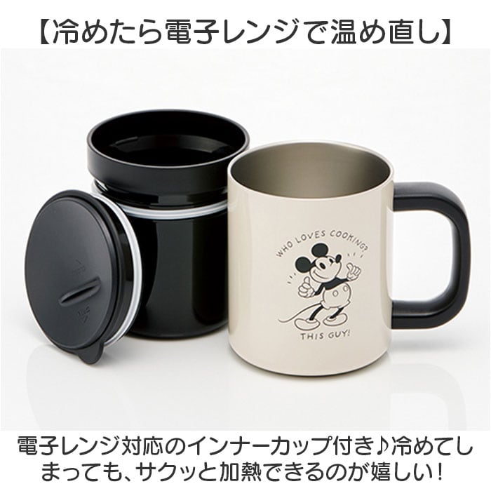 | 商品説明 | 【美味しく味わえる便利な相棒】美味しい温度が長持ち。温めもできる、キャラクターデザインの「インナーカップ付マグ」。【冷めたら電子レンジで温め直し】電子レンジ対応のインナーカップ付き♪冷めてしまっても、サクッと加熱できるのが嬉しい!【お好みで使い方を選べる2way】インナーカップ付きで使うのはもちろん!マグカップ単体でも使用可能なアイテム◎【3層構造で高い保温保冷力をキープ】真空断熱2重構造のマグカップとインナーカップで3層に。温冷ともに飲み頃温度が持続。【仕事や作業のお供にうれしいフタ】ほこりなどをカバーし、温度キープにも効果的。こぼれにくいシリコンパッキン付き。【フタをしたまま直飲みOK】開閉スムーズなスライド式の飲み口付き。フタをしたまま飲めるのが嬉しい!【自宅やオフィス、アウトドアに☆】お仕事や作業のお供に。アウトドアシーンなどでも使いやすいサイズ感。(※)容量・・・インナーカップ付き:約320ml/マグカップのみ:約330ml。【サッと手に取れるハンドル】指を引っ掛けやすいハンドル。作業中も手に取りやすいのがポイント。【衝撃から保護するラバーカバー】底面の滑り止めは転倒防止にはもちろん、デスクなどに置いた時の衝撃や音を和らげる効果も◎【世代問わず愛されるキャラクター】みんなが大好きなキャラクター柄♪ナチュラルな風合いで大人も使いやすく、ギフトにも最適! |