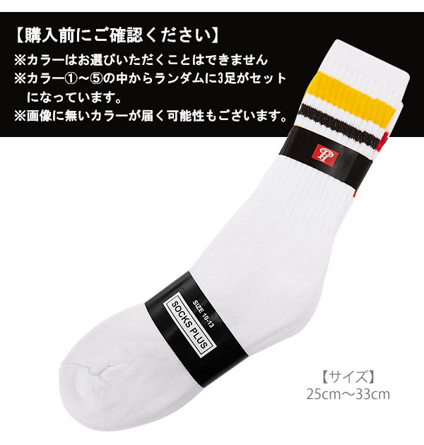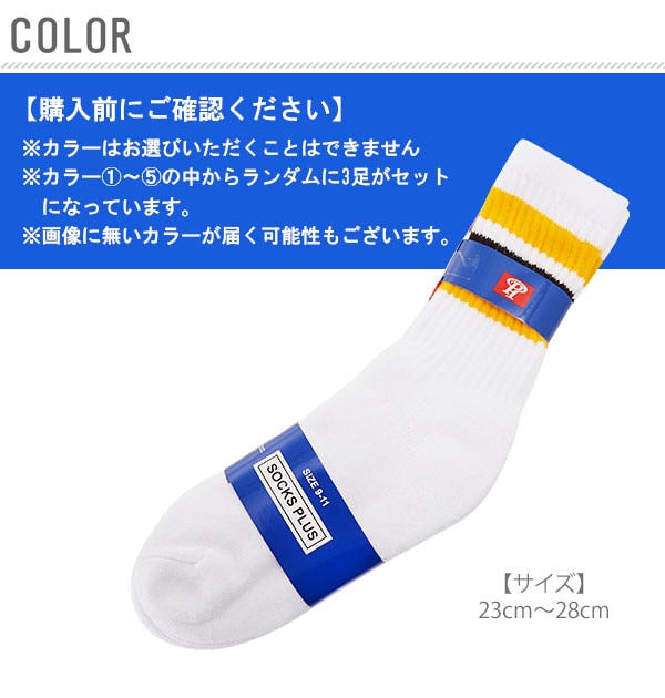 | 商品説明 | スポーティーなスリーラインソックス3足セットです。足首はリブ編みでやさしい履き心地。スケーターファッションにもレディースのスポーティーMIXコーディネートにもおすすめです。カラーの組み合わせはランダムでお届けします。 |