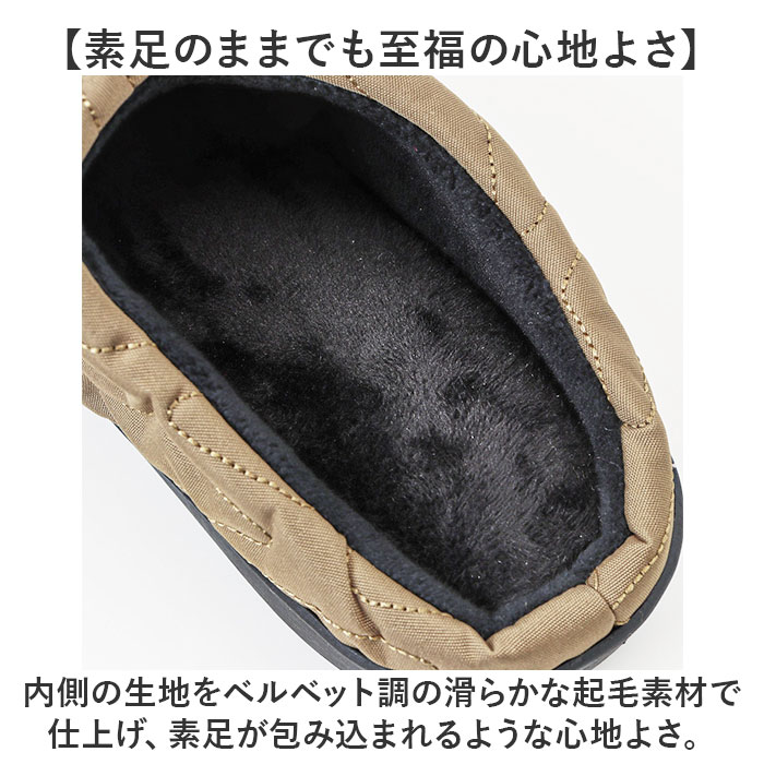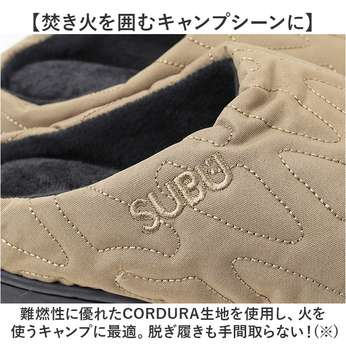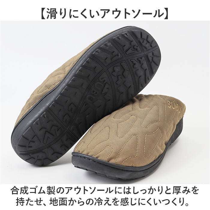 | 商品説明 | 【SUBU誰も知らない冬のサンダル】寒い時期、ふと出掛ける時に素足で履ける、今までにない秋冬サンダル「SUBU NANNEN Outline」【ダウンのような暖かさで足元包む】キルティング素材で足元をふんわり包み、冷え込む朝も暖かな履き心地!【素足のままでも至福の心地よさ】内側の生地をベルベット調の滑らかな起毛素材で仕上げ、素足が包み込まれるような心地よさ。【足裏に優しい4層構造ソール】4層構造のフッドベッドが着地時の衝撃をふわっと吸収。抜群のフィット感と優しい履き心地。【スリッパみたいにサッと履ける】大きく開いた履き口と踵部分が低めになったフラット形状で、つま先がスッと入り着脱スムーズ。【焚き火を囲むキャンプシーンに】難燃性に優れたCORDURA生地を使用し、火を使うキャンプに最適。脱ぎ履きも手間取らない!(※)CORDURA(R)FABRICとは、摩耗、耐久性、耐水性に優れた繊維であり、ミリタリーやワークウェアにも使用されるファブリックブランドです。【滑りにくいアウトソール】合成ゴム製のアウトソールにはしっかりと厚みを持たせ、地面からの冷えを感じにくいつくり。【ちょっとそこまでのお出掛けに】ご近所へのお買い物やワンちゃんのお散歩に気軽に履ける!寒い季節でも素足のままで足元快適。【ルームシューズとしても大活躍】クッション性のあるインソールはリラックスして過ごすおうち時間にもぴったり。【大切な人とリンクコーデも自在】カップルやファミリーでコーディネートできる20cm~31.5cmまで揃う豊富なサイズ展開。【アウトドアに身軽に持ち運び】開口部を止水ファスナーで仕上げたCORDURA生地の収納袋付きでギフトにもおすすめ◎ |