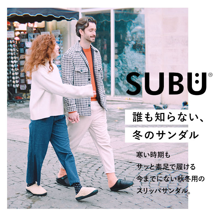 | 注意点 | 【About SUBU -スブ- 】“SUBU”とは、誰も知らない冬のサンダル。「リラックスしている時こそ豊かな時間を過ごせる」をアイデンティティに、人々に心地よい生活を提案します。好きなモノ、新しいコトへ、一歩ずつ。SUBUは、そんな小さな「一歩」を踏み出す人に愛されつづけるブランドでありたいと願っています。[付属品]収納袋 x 1枚長時間日光にあたったり、摩擦、水漏れなどによる色落ちや色移りすることがあります。お取り扱いの際は、商品やパッケージなどに記載されている品質表示、アテンションタグ、ご使用上の注意事項などを必ずご確認下さい。本来の目的以外にはご使用にならないで下さい。カメラやモニターの性質により、画像と実物の色の違いがある場合がございますのでご理解願います。 |