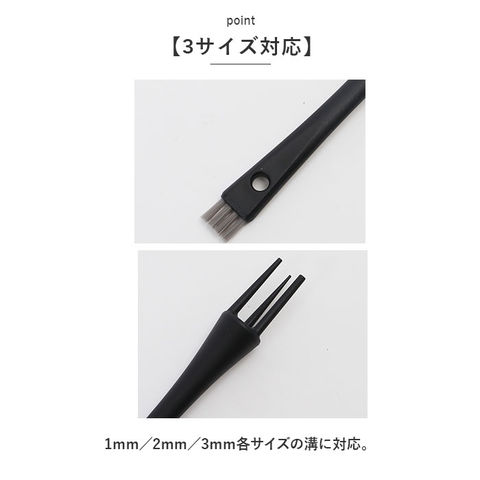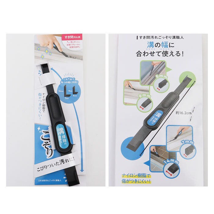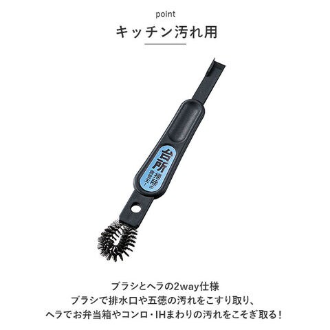 商品説明すき間や細かい汚れ掃除の救世主!「ごっそり溝職人」3種セットが新登場。【これさえあれば完璧!】フローリング溝汚れ用、すき間汚れ用、キッチン汚れ用のセット。家中の細かいところの掃除をカバー!【傷付きを気にせずお掃除!】本体は傷が付きにくく、丈夫でしなやかなガラス繊維入りのナイロン樹脂素材。【作業ラクラク】持ちやすいグリップ設計。程よい力でお掃除できちゃう!【引っ掛け収納】フローリング溝汚れ用・キッチン汚れ用は、フックなどに引っ掛けておける穴付き。使いたい時にサッと取り出しOK。《フローリング溝汚れ用》【2way仕様】溝スティックとブラシの2way。スティックでレールに、ブラシで巾木に、床や溝のすき間汚れをしっかり落とせる!【3サイズ対応】・1mm/2mm/3mm各サイズの溝に対応。【柔らか仕様のブラシ】すき間のホコリ取りに便利。《すき間汚れ用》【4サイズ対応】・5mm、7mm、9mm、14mm各サイズの溝に対応。用途や幅に合わせてサッと使い分け♪【あらゆるすき間に!】窓のサッシ、浴室ドアレール、玄関の引き戸掃除などに最適◎《キッチン汚れ用》【2way仕様】ブラシとヘラの2way。ブラシで排水口や五徳の汚れをこすり取り、ヘラでお弁当箱やコンロ・IHまわりの汚れをこそぎ取る!【ステンレスワイヤーブラシ】ブラシ部分はサビにくいステンレスワイヤー。【細かい汚れに!】届きにくい場所、なかなか落ちないしつこい汚れもスーッときれいに落ちる!水栓や換気扇のお掃除にも最適。