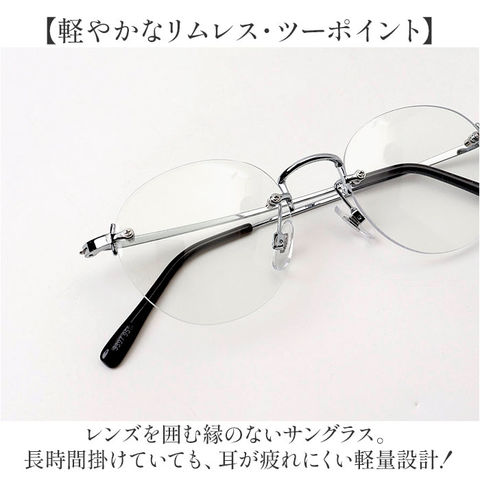 | 商品説明 | 【大人な印象を与えるアイウェア】シンプルな中にこだわりを。デザイン性も機能面もしっかり考えられた「サングラス」。【知的で落ち着きのある仕上がり】クラシックの典型モデルを、優しい風合いのレンズシェイプでまとめたユニセックスデザイン。【軽やかなリムレス・ツーポイント】レンズを囲む縁のないサングラス。長時間掛けていても、耳が疲れにくい軽量設計!【素顔に近くナチュラルにキマる】お顔に優しく馴染むシルエット。メガネ初心者さんや、メガネを目立たせたくない方におすすめ。【気になる紫外線から目元をガード】紫外線を99%以上カット!無防備な目を保護し、屋外シーンや旅行などでも重宝。【伊達メガネ感覚でおしゃれに】可視光線透過率95%のクリアレンズ。明るい視界が確保され、夜間や薄暗い室内でも使用可能。 |