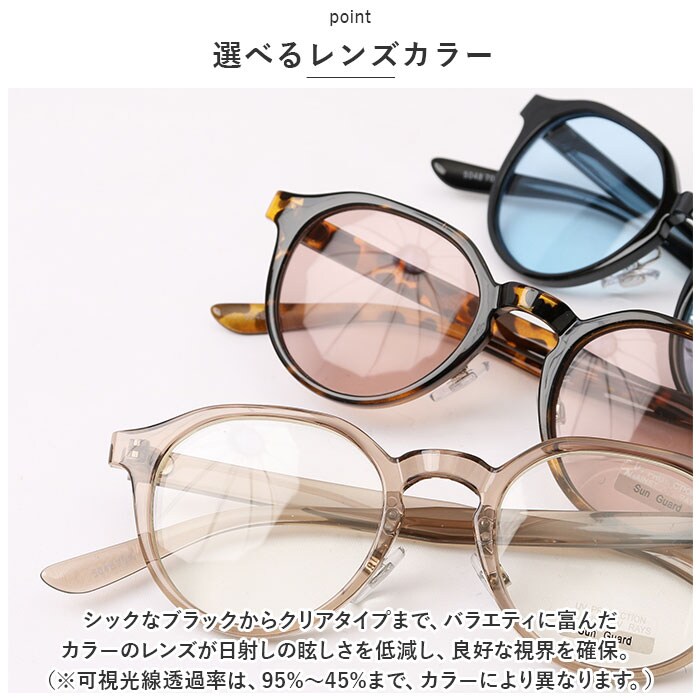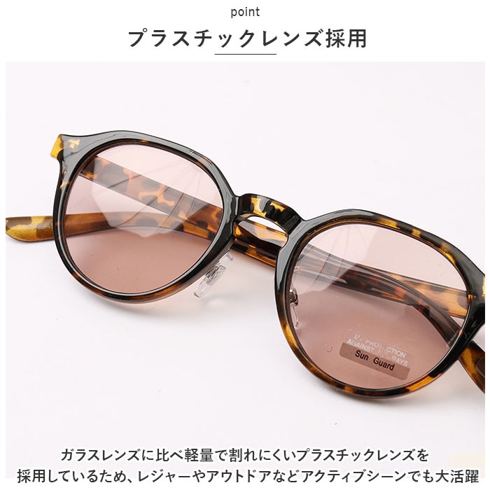 | 商品説明 | 誰にでも似合う♪人気急上昇中のクラウンパント型サングラスが新登場。【クラウンパント型】ボストンシェイプの上部を一直線にカットし、柔らかさをの中にも洗練された印象を与えるクラウンパント型を採用。直線と曲線を組み合わせることで誰にでも似合うと近年人気急上昇中!!【お洒落なだけじゃない♪】ノーズ部分がせり出したアジアンフィットフレームを採用。日本人の骨格に合わせたフレーム作りとクリングスノーズパットで自分の顔にしっかりフィット。ノーズ部分の微調整も可能。【紫外線99%以上カット】UVカット機能付きレンズが、日射しとともに降り注ぐ紫外線を約99%ブロック!日焼けの気になる季節や目の健康を守りたい方に最適。【選べるレンズカラー】シックなブラックからクリアタイプまで、バラエティに富んだカラーのレンズが日射しの眩しさを低減し、良好な視界を確保。(※可視光線透過率は、95%~45%まで、カラーにより異なります。)【プラスチックレンズ採用】ガラスレンズに比べ軽量で割れにくいプラスチックレンズを採用しているため、レジャーやアウトドアなどアクティブシーンでも大活躍。【ユニセックスモデル】普段使いのメガネのようにファッションに取り入れやすいシンプルなデザインで、男性でもさりげなく着用できるユニセックスモデル。 |