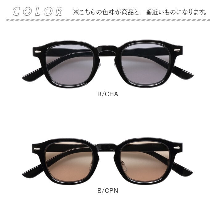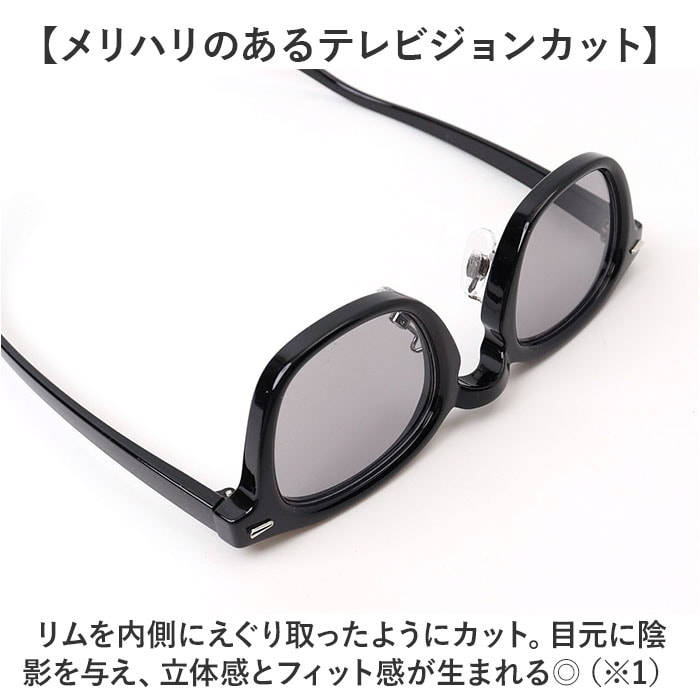 | 商品説明 | 【ヴィンテージ感のあるデザイン】シンプルな中にレトロ感を。デザイン性も機能面もしっかり考えられた「サングラス」。【伊達メガネ感覚でおしゃれに】コーデにプラスしやすく、気軽に掛けられる◎シェアやお揃いもできるユニセックス仕様。【メリハリのあるテレビジョンカット】リムを内側にえぐり取ったようにカット。目元に陰影を与え、立体感とフィット感が生まれる◎(※1)テレビジョンカットは、ブラウン管テレビのような見た目から名付けられたものです。【力強い目元を演出する極厚フレーム】厚みのあるフレームを使うことで、目元の印象を引き締める!存在感のある黒縁タイプ。【気になる紫外線から目元をガード】紫外線を99%以上カット!無防備な目を保護し、屋外シーンや旅行などでも重宝。【お好みで選べる可視光線透過率】レンズを透過する光の割合はカラーにより様々。シーンに合わせてチョイスOK。(※2)B/CHA:35%、B/CPN:45%、B/L.BL:70%、B/EMG:65%、B/L.PK:50%、B/OR:65%、B/CL:95% |