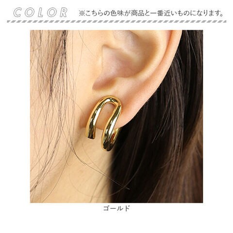 | 商品名 | ゴールドカラー 変形2重フープのピアス風クリップイヤリング |