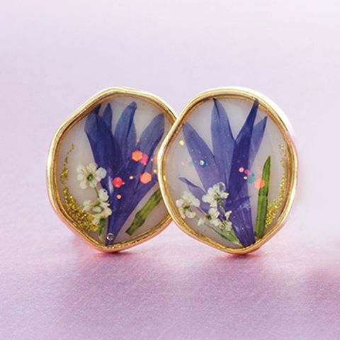 押し花閉じ込めイヤリング【ブルー】