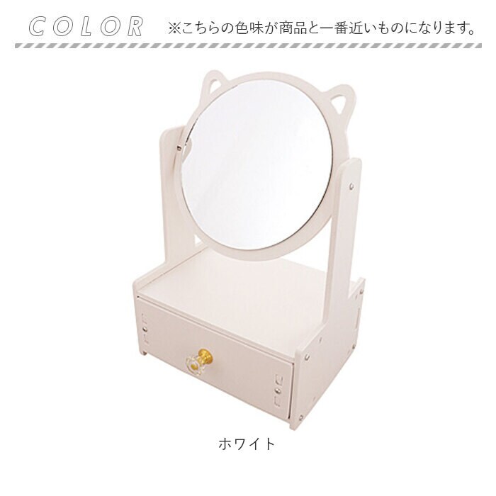 商品名ホワイト ネコ耳ミラー付き卓上収納ボックス