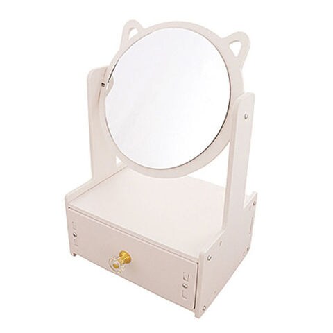 ホワイト ネコ耳ミラー付き卓上収納ボックス【ホワイト】