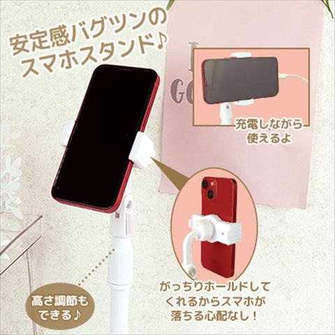 | 商品説明 | 安定感バグツンのスマホスタンド☆360度回転!かたむきも自由自在!高さ調節もできて動画視聴や撮影にもオススメ♪ |