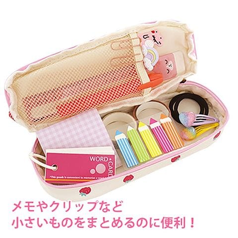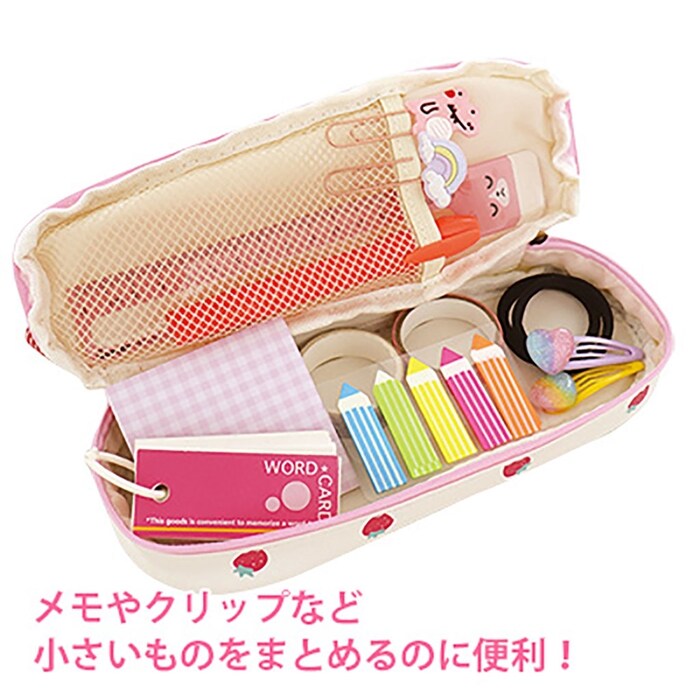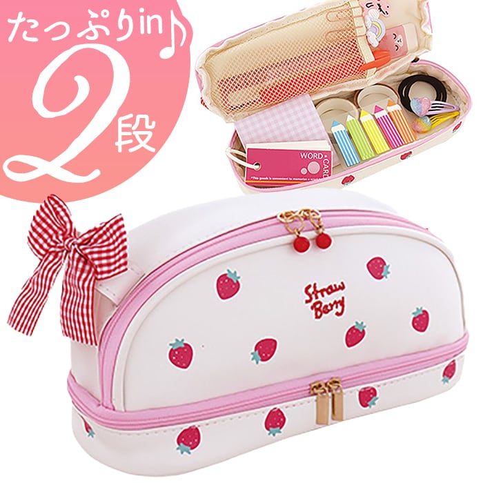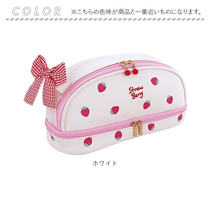 | 商品名 | 白色 チェックリボン付きいちご柄大容量ペンポーチ |