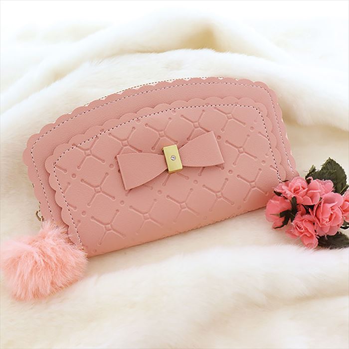 | 商品名 | ピンク リボン&ファーチャーム付き長財布 |