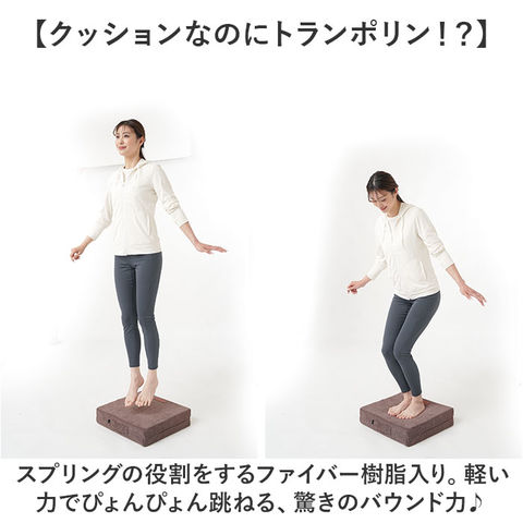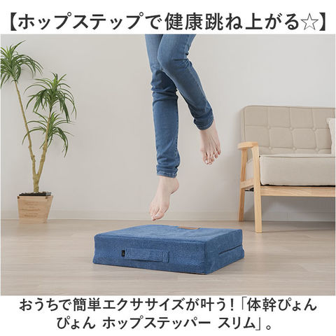 | 商品説明 | 【ホップステップで健康跳ね上がる☆】おうちで簡単エクササイズが叶う!「体幹ぴょんぴょん ホップステッパー スリム」。【クッションなのにトランポリン!?】スプリングの役割をするファイバー樹脂入り。軽い力でぴょんぴょん跳ねる、驚きのバウンド力♪【遮音性も耐久性もばっちりで安心】中材が衝撃を吸収し、着地時の気になる音を軽減。しっかりとした作りでへたりにくい◎【大人も子供も楽しく遊べるアイテム】おうちの中でも目一杯動けてストレス発散!お子さまも元気にジャンプ☆(※)底面はすべり止め生地を使用しております。【大人の運動不足解消にも効果的】トランポリン運動20回×3セットで約10.5kcal消費!ウォーキング1分間の約3.4倍。(踏み台昇降運動にも!)【スリムでかさばりにくく扱いやすい】出しっぱなしでも邪魔にならず収納も省スペース。部屋の広さを気にせず取り入れやすいサイズ。【日常でも色んな使い方ができて万能】スツールとして座ったり、オットマン代わりにも。移動もしやすい持ち手付き。【空間に馴染むナチュラルカラー】インテリアに溶け込む、シンプルなデザインと優しい色合い。出しっぱなしでもOK! |